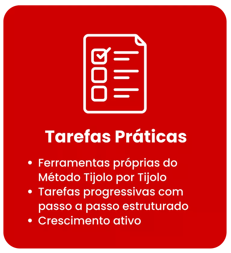 Grupo para tirar dúvidas, aprofundar temas e trazer casos reais de alunos. Um espaço de troca, apoio e evolução guiada — tijolo por tijolo.